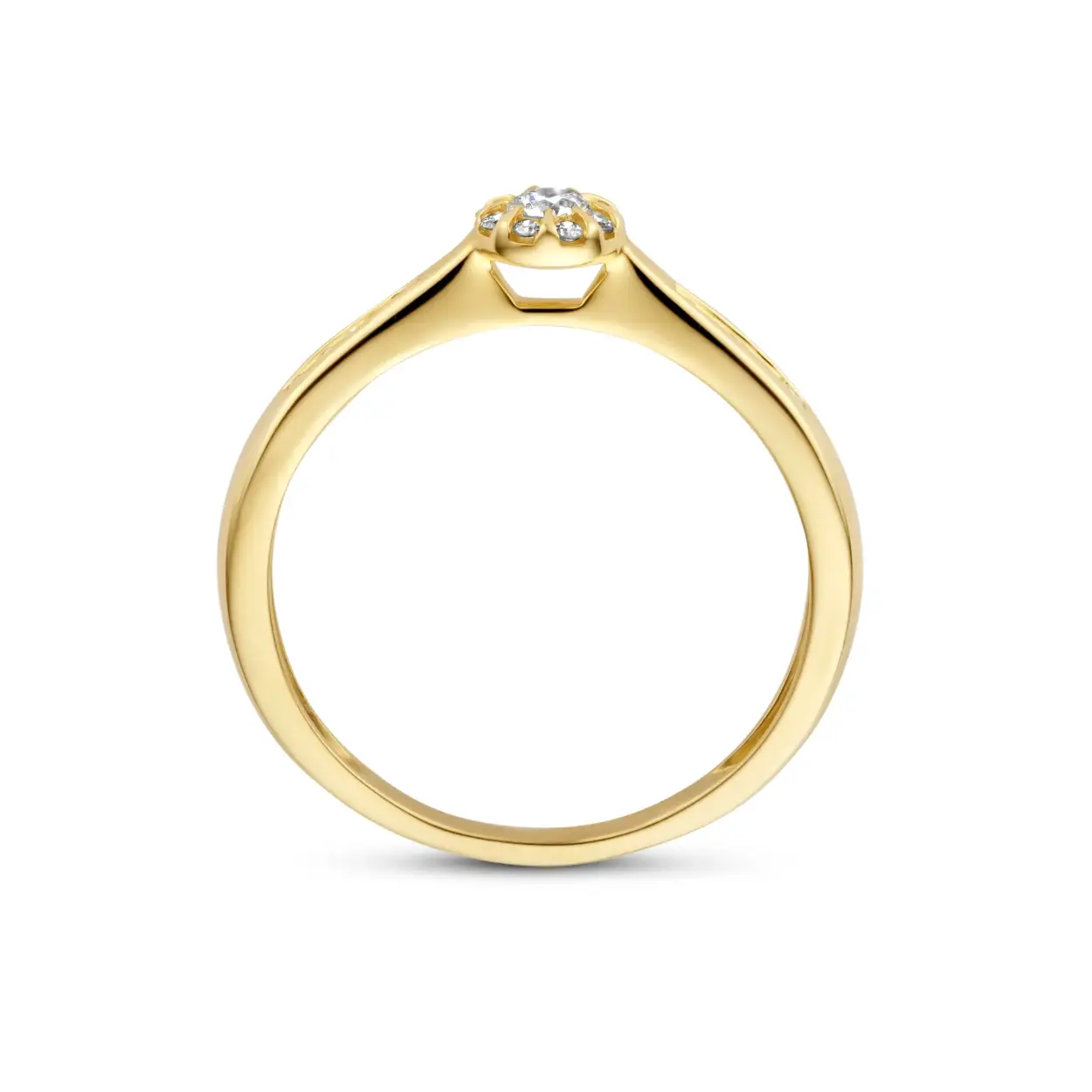 14 krt geelgouden solitair ring met rozet diamant en diamant op scheen.