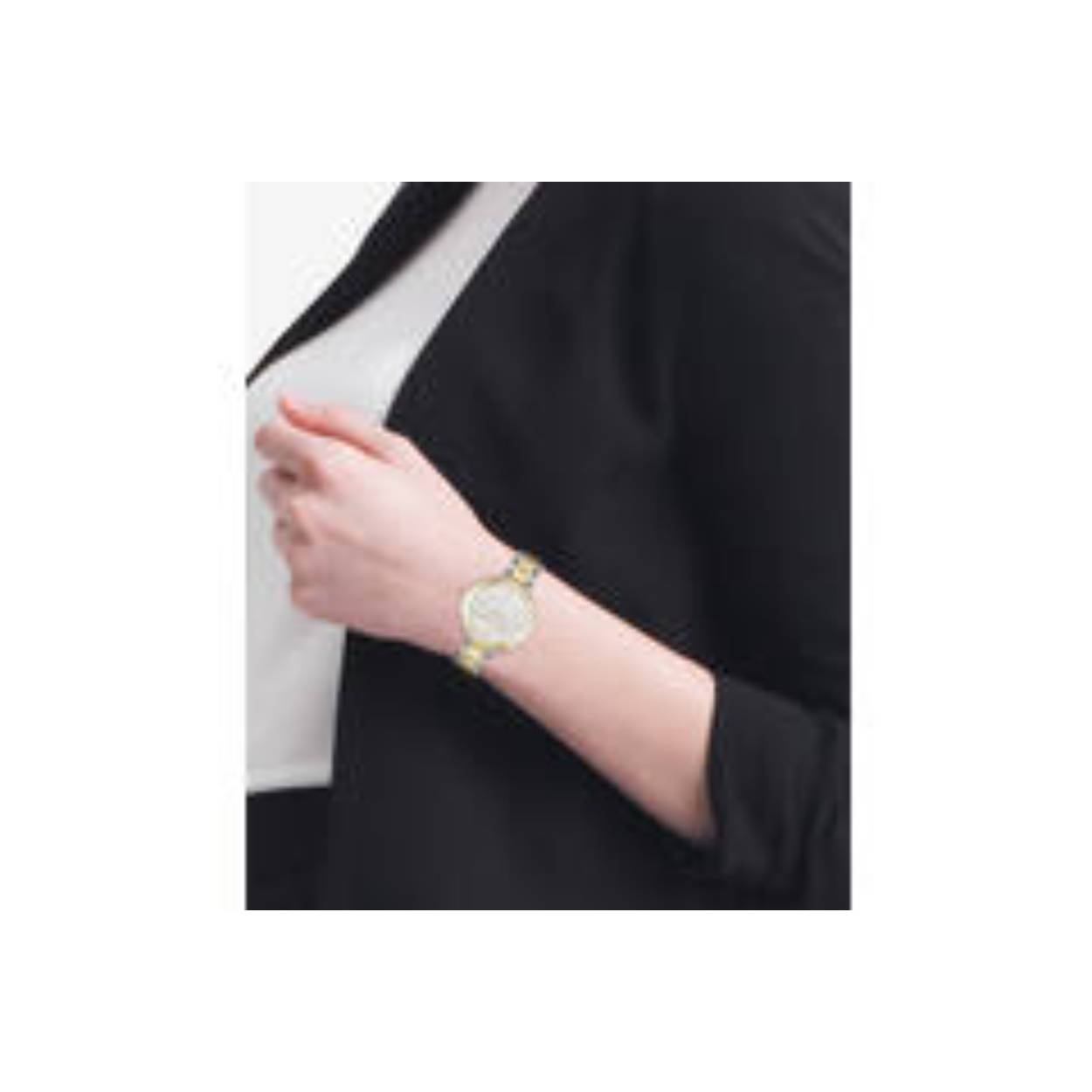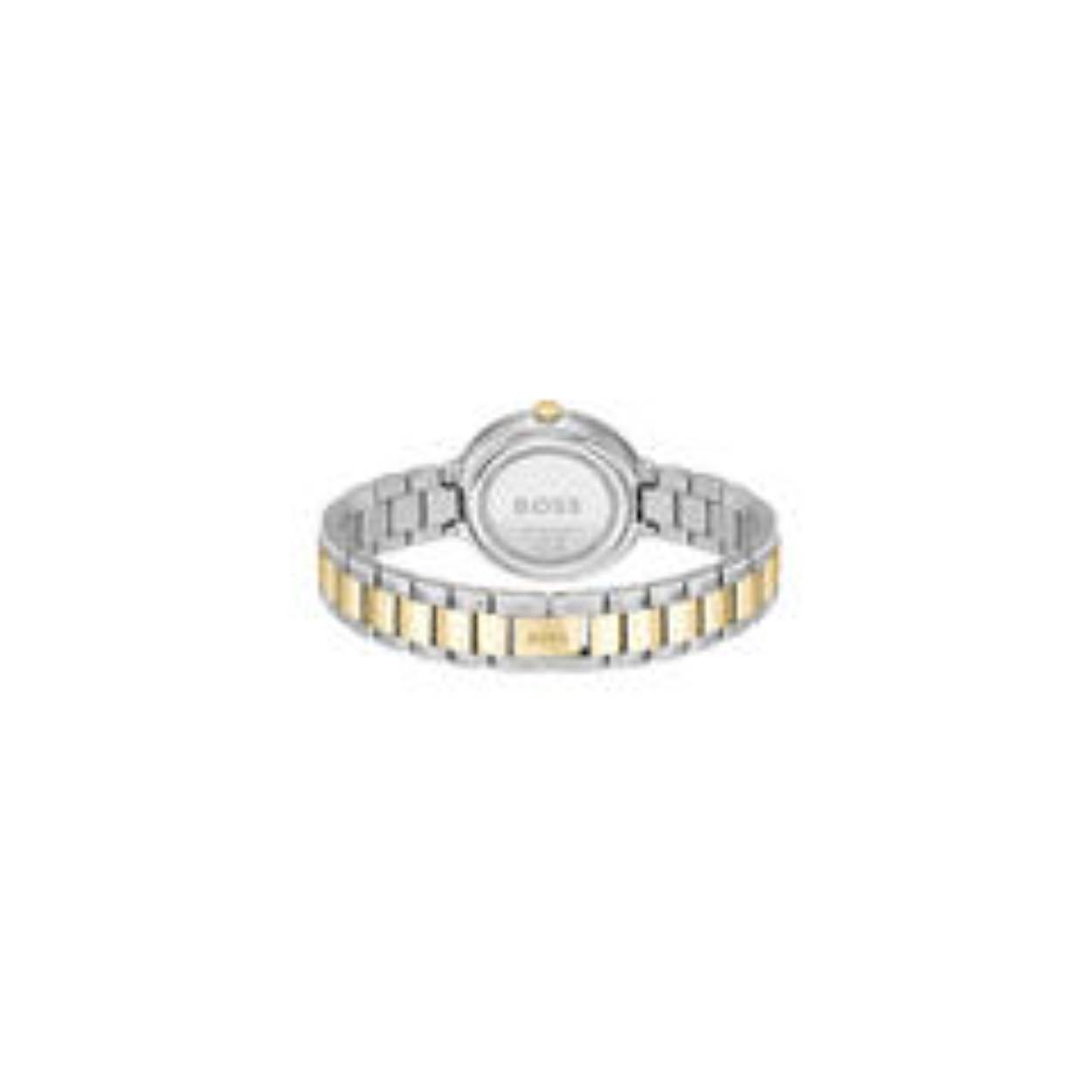Dit BOSS horloge uit de SENA serie met artikelnr: HB1502761 heeft een chique look. Zeer geschikt voor de moderne stijlvolle vrouw van nu. Het dameshorloge valt op door zijn stalen ronde horlogekast met een platte goudkleurige bezel en een zilverwitte bewerkte wijzerplaat met op de 3,6,9 en 12 een kristal als uursaanduiding. Aan de kast zit een stalen bicolor schakelband met vouwsluiting. De kast van het horloge heeft een doorsnee van 34mm met mineraalglas en is 3ATM.