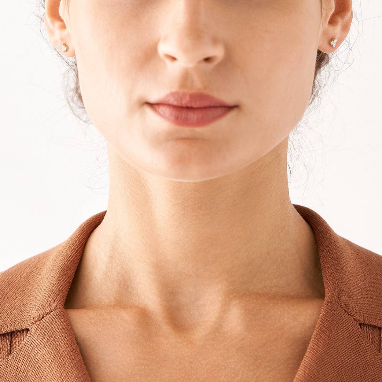 Deze oorknopjes zijn gemaakt van goudkleurig roestvrij staal en hebben sluitingen achter de oren.