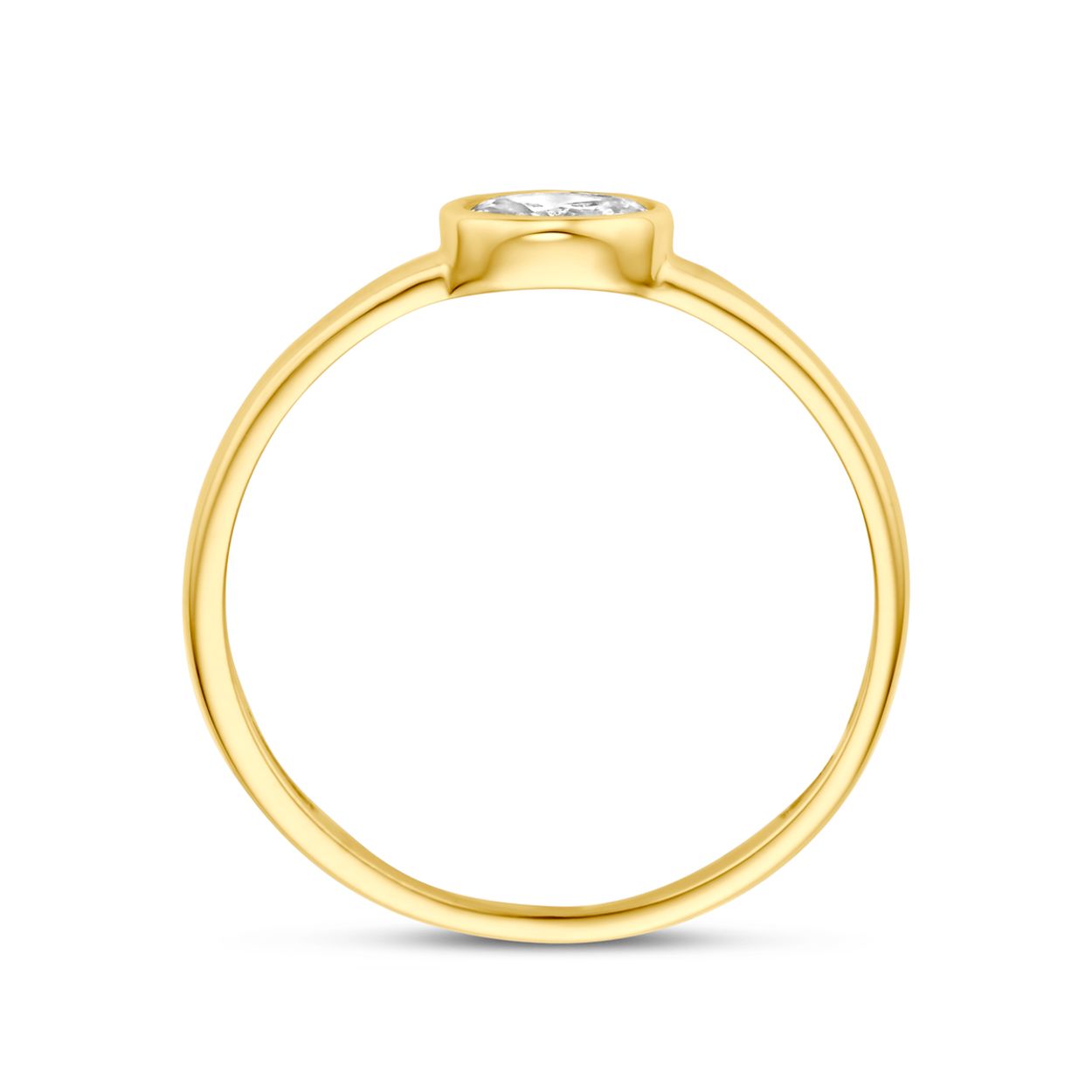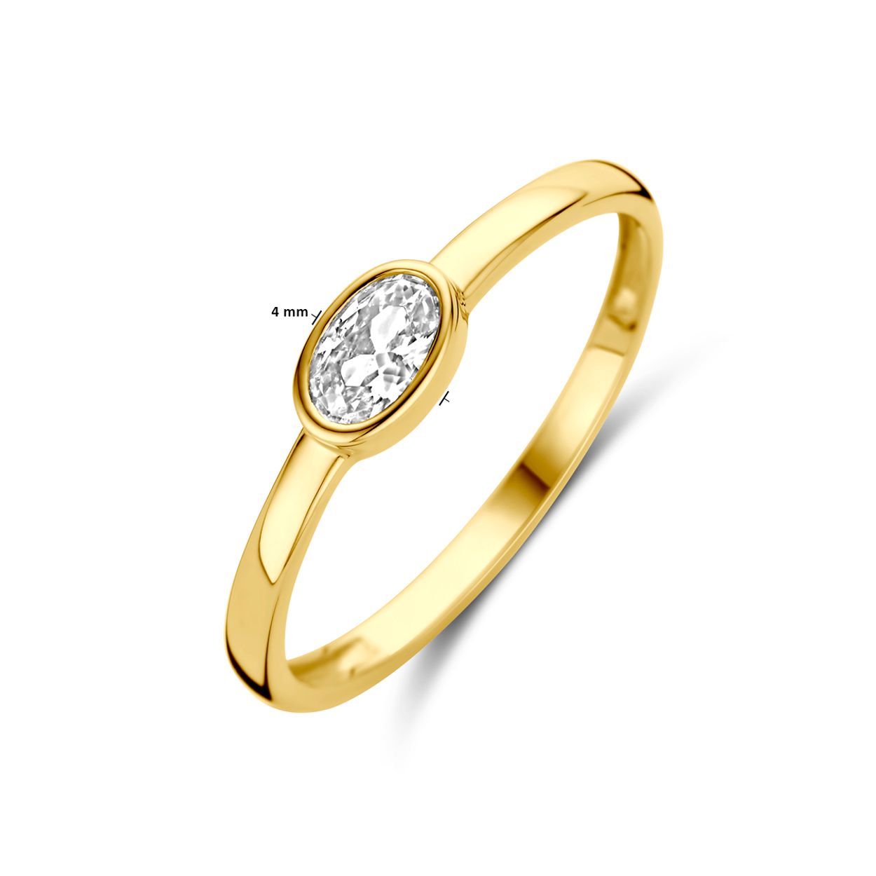 14k Geelgouden ring uitgevoerd met zirkonia. De ring heeft een afmeting van 4x6mm.