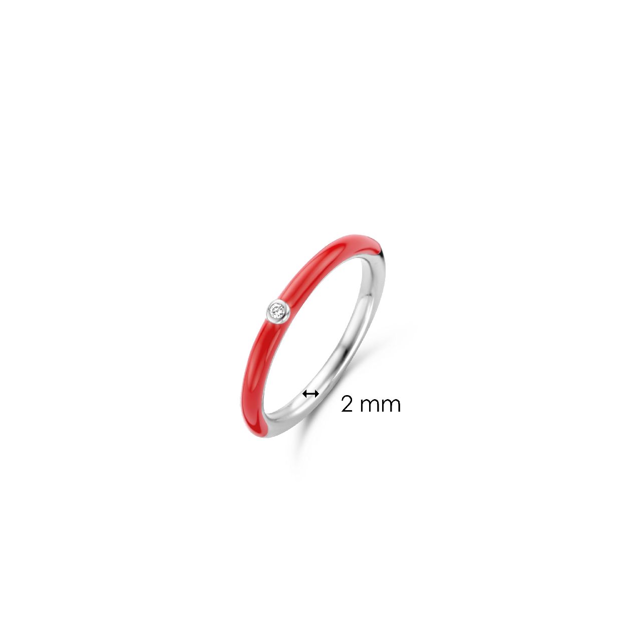 Deze Ti Sento aanschuifring heeft een koraal rode kleur en met een zirkonia steentje in het midden.