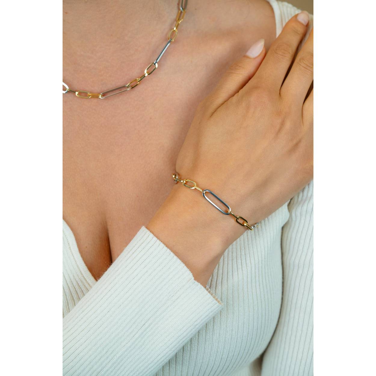 ZINZI zilveren bicolor schakelarmband met afwisselend lange en korte ovale schakels (7mm breed). De armband is vervaardigd van eerste gehalte zilver (925) en extra geel verguld.