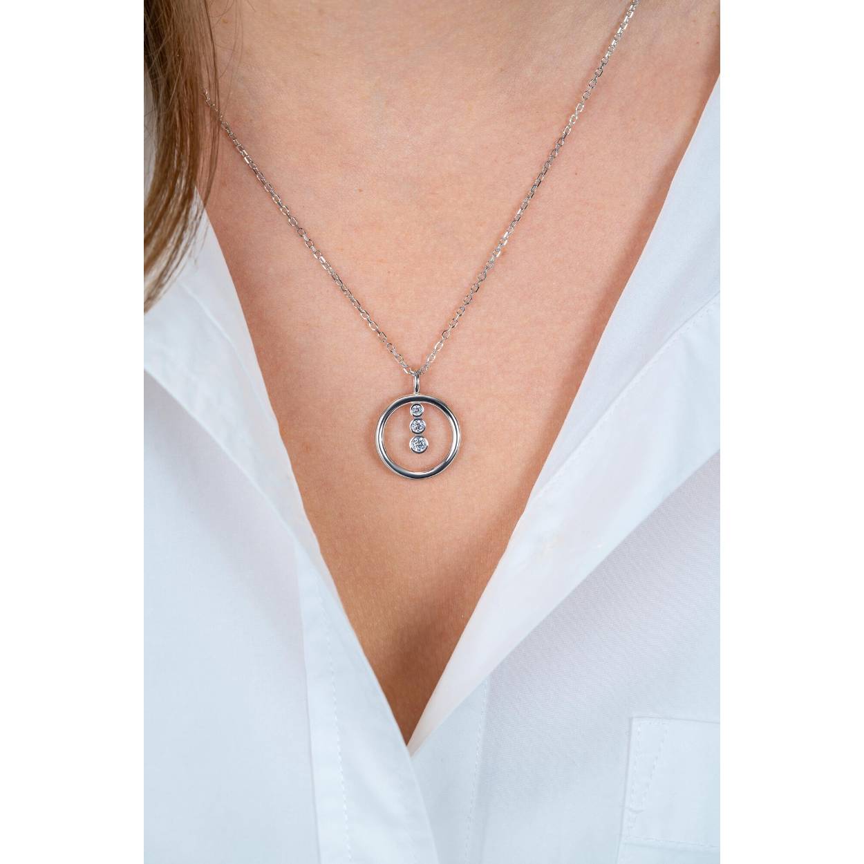 ZINZI zilveren ketting 45cm met ronde hanger en drie fonkelende witte zirkonia's ZIC2820