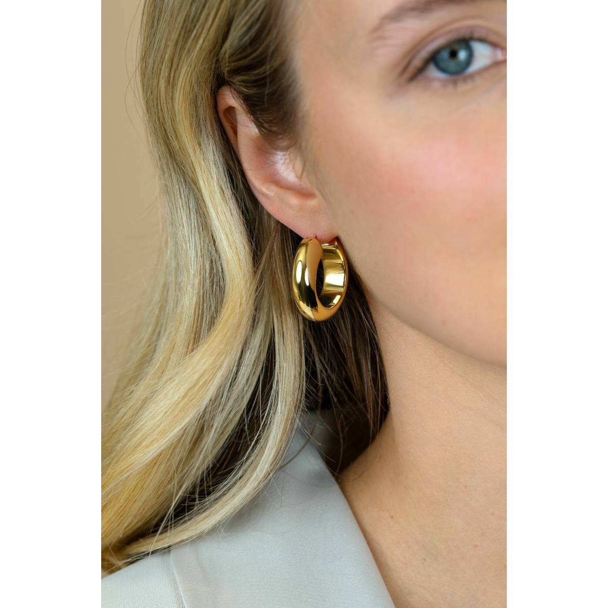 ZINZI gold plated zilveren oorringen 28mm met brede buis (8mm) en rond model. Met handige italiaanse bovensluiting. Voor een trendy en opvallende look. Vervaardigd van eerste gehalte zilver (925) en extra geel verguld.