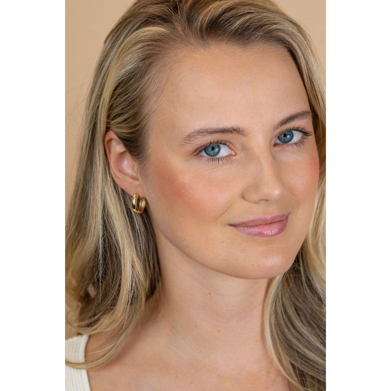 ZINZI goldplated zilveren gladde oorringen met brede ronde buis 5mm met luxe klapsluiting ZIO2793G 17MM