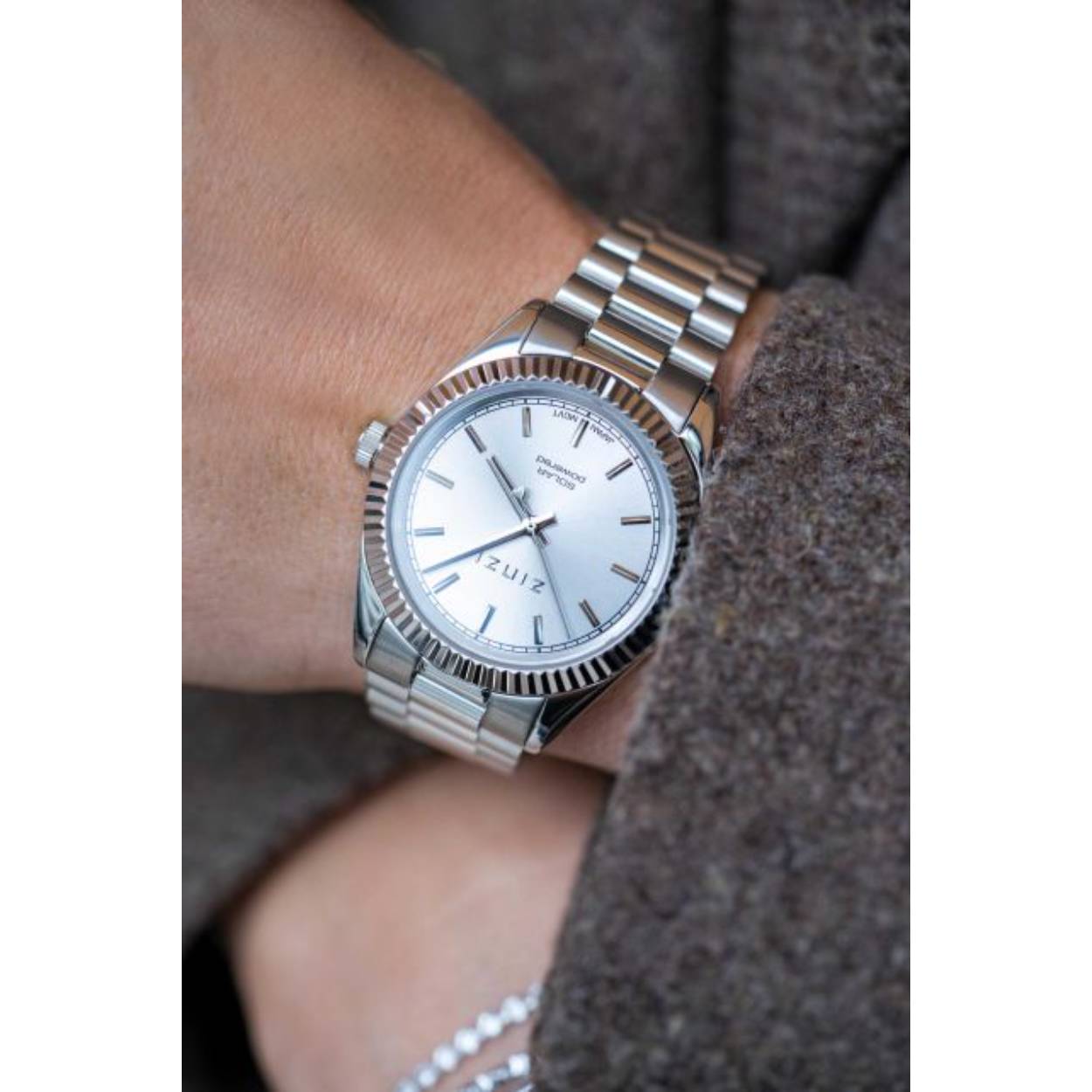 Het ZINZI Solaris horloge is trendy, klassiek en duurzaam tegelijk. Het Japanse kwaliteitsuurwerk maakt gebruik van licht als energiebron. De kleine zonnecellen vangen het zonlicht op, maar ook met kunstlicht kan dit horloge zich opladen, Het vervangen van de batterij is niet meer nodig. Met de mooie ring rondom de zilverkleurige wijzerplaat en de stoere rolex-style stalen band met luxe clip-sluiting, krijgt het horloge een stijlvolle stoere uitstraling. Voorzien van een zilverkleurige wijzerplaat, stalen kast 35mm en stalen schakelband in de kleur zilver. Extra kwaliteit: Voorzien van een Citizen-Miyota uurwerk, sterk mineraal glas en het horloge is 5atm waterbestendig (tegen regen en spatwater).
