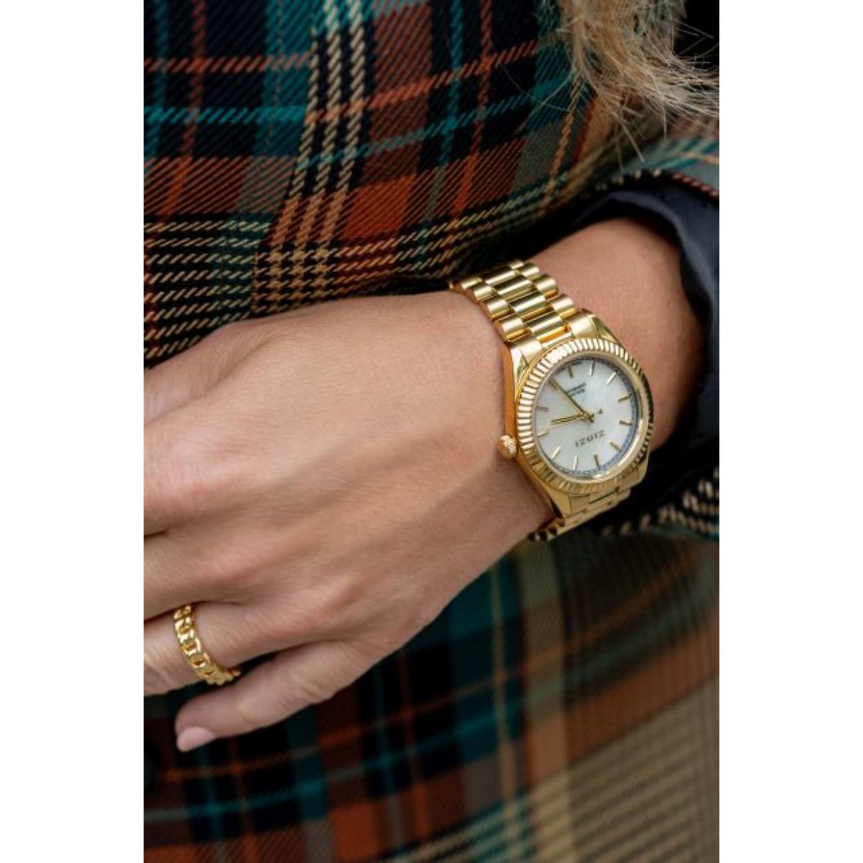 Het ZINZI Solaris horloge is trendy, klassiek en duurzaam tegelijk. Het Japanse kwaliteitsuurwerk maakt gebruik van licht als energiebron. De kleine zonnecellen vangen het zonlicht op, maar ook met kunstlicht kan dit horloge zich opladen, Het vervangen van de batterij is niet meer nodig. Met de mooie ring rondom de parelmoer wijzerplaat en de stoere rolex-style stalen band met luxe clip-sluiting, krijgt het horloge een stijlvolle stoere uitstraling. Voorzien van een witte parelmoer wijzerplaat, geelgoudkleurige stalen kast 35mm en stalen schakelband. Extra kwaliteit: Voorzien van een Citizen-Miyota uurwerk, sterk mineraal glas en het horloge is 5atm waterbestendig (tegen regen en spatwater).